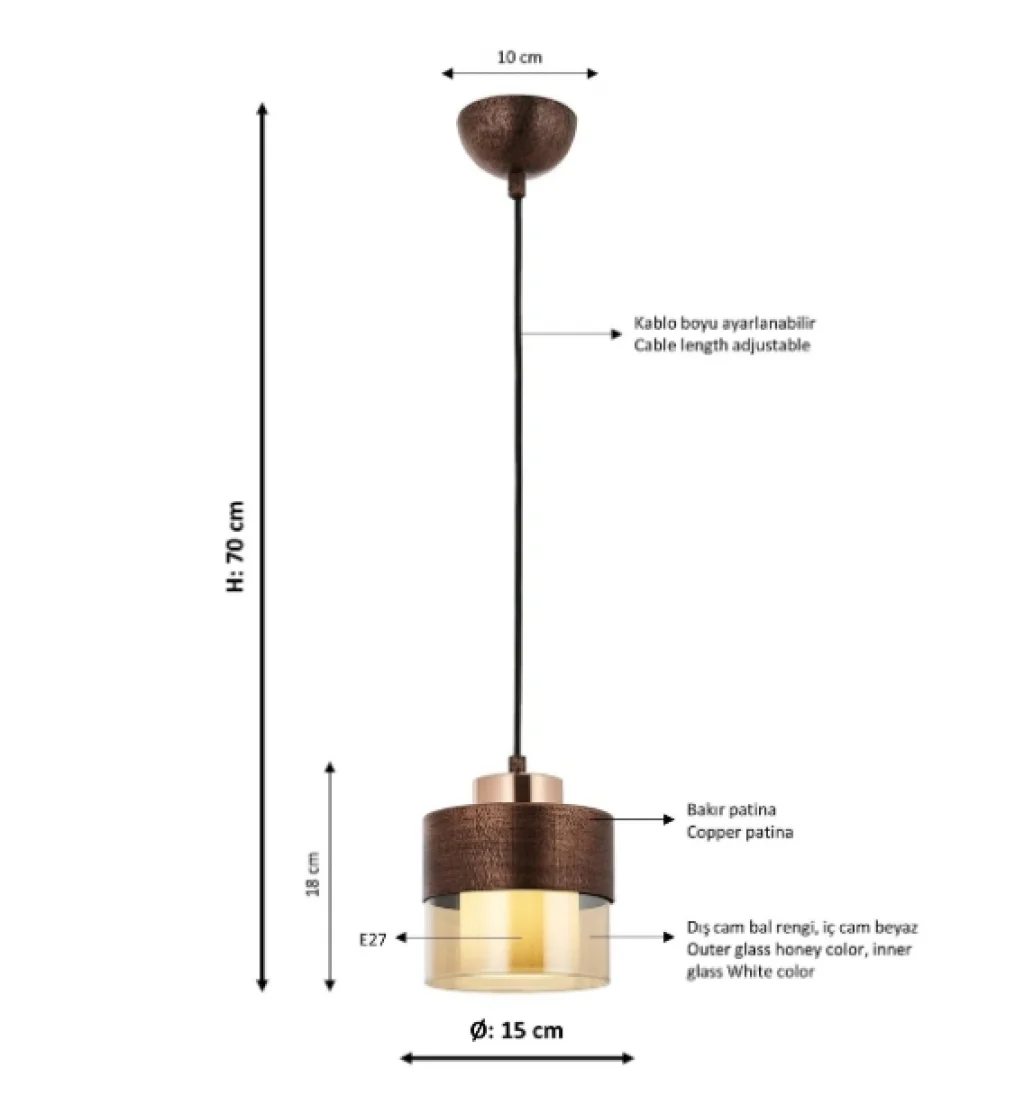 Aconn Tekli Bakır Renk Kaplamalı Sarkıt Avize