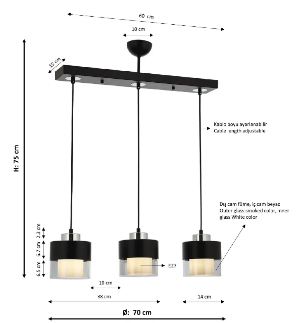 Aconn Üçlü Yemek Masası Siyah Renk Kaplamalı Sarkıt Avize