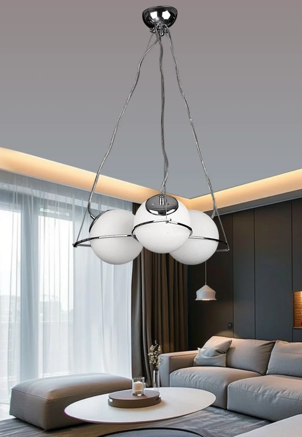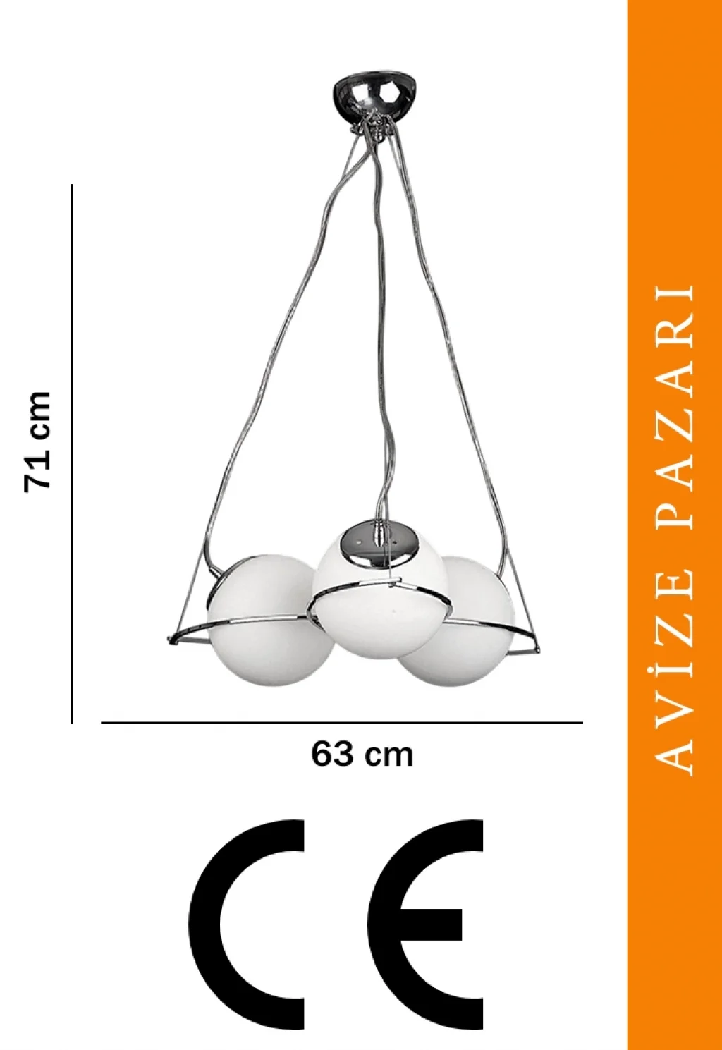 Güney 20'lik Glop Cam Üçlü Krom Renkli Camlı Sarkıt Avize