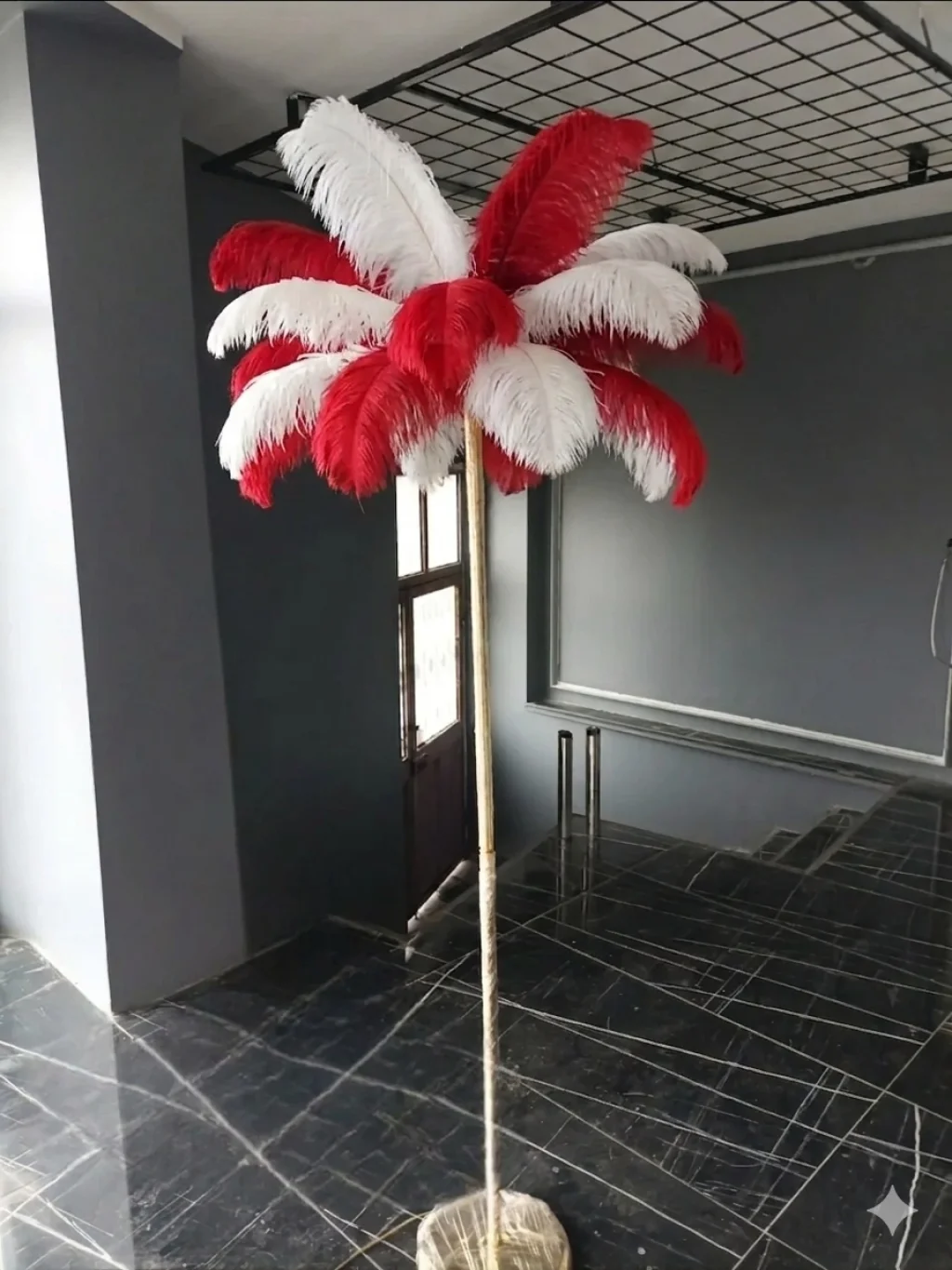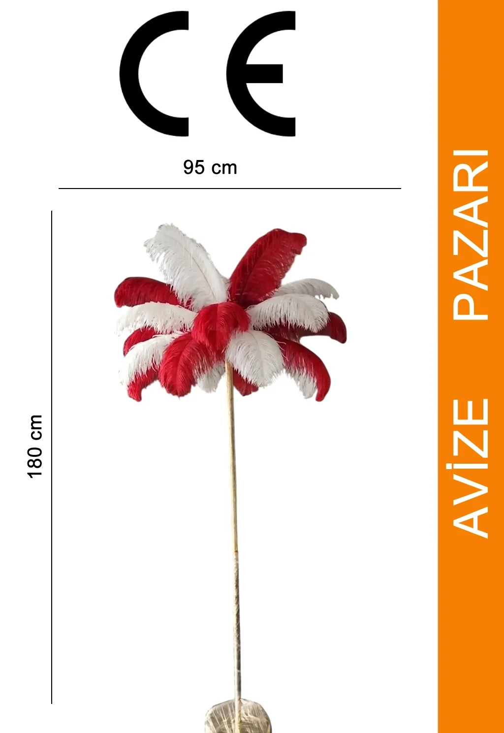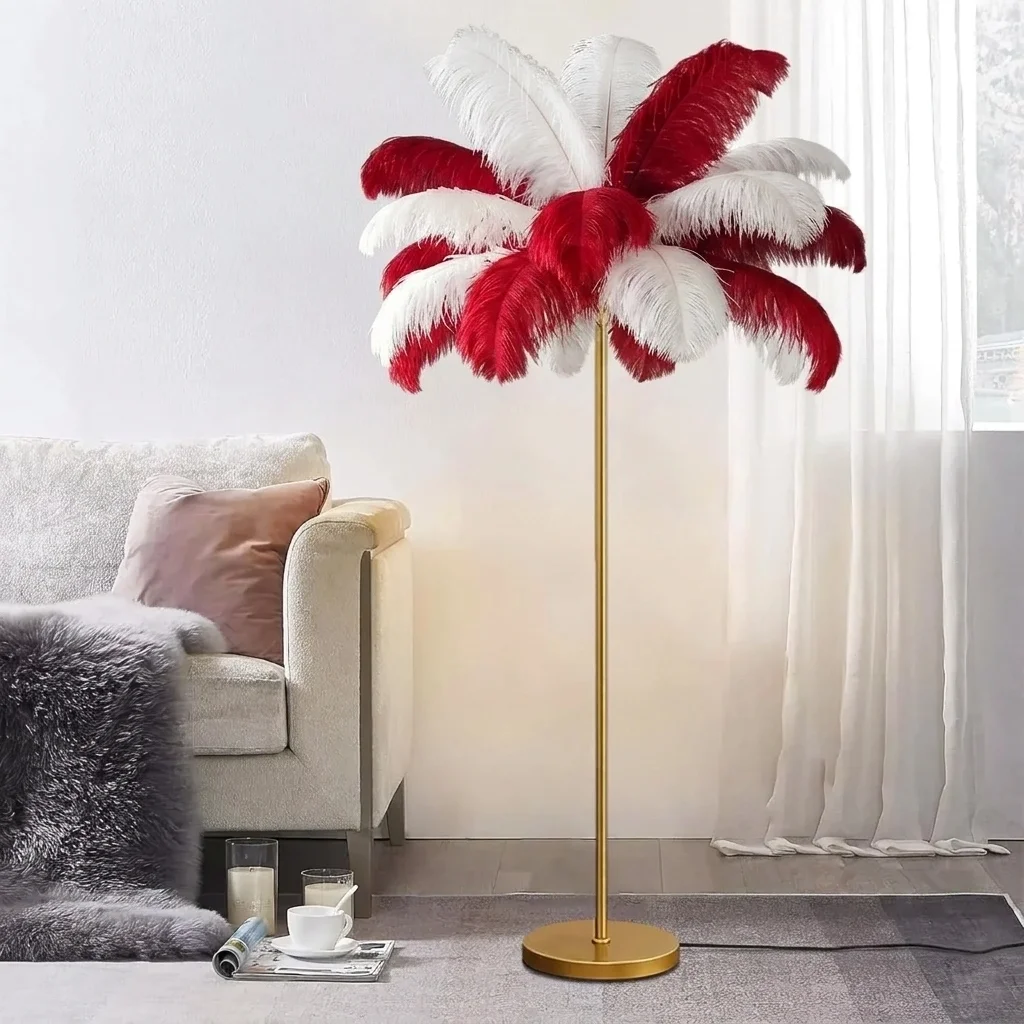 Kırmızı Beyaz Deve Kuşu Tüyü Lambader